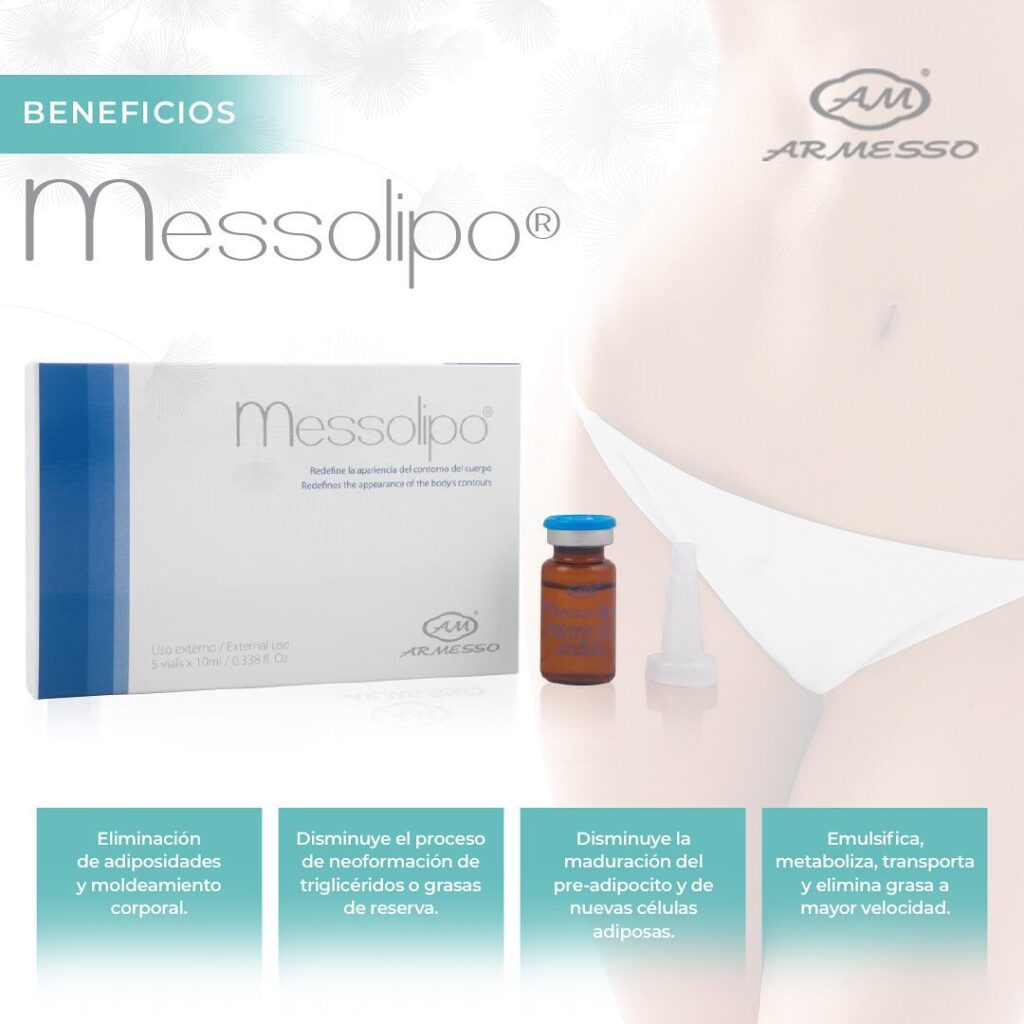 Messolipo es un tratamiento avanzado con una poderosa combinación de más de siete ingredientes lipolíticos diseñados para eliminar adiposidades rebeldes, moldear el cuerpo y tonificar la piel. Su fórmula actúa de manera sinérgica para emulsificar, metabolizar y eliminar grasa localizada, mientras nutre la piel, previniendo la flacidez y el efecto rebote. Es ideal para áreas problemáticas como espalda, brazos, abdomen, muslos y glúteos, ofreciendo resultados visibles en corto tiempo.