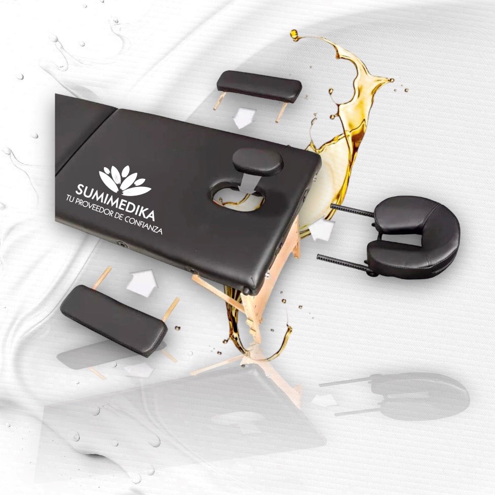 Esta es la única camilla de masaje que es completamente personalizable. Puedes modificar su altura, cabezal desmontable, descansa brazos laterales y frontal removibles con facilidad para que quien reciba el masaje disfrute de una comodidad total, plena y relajante.