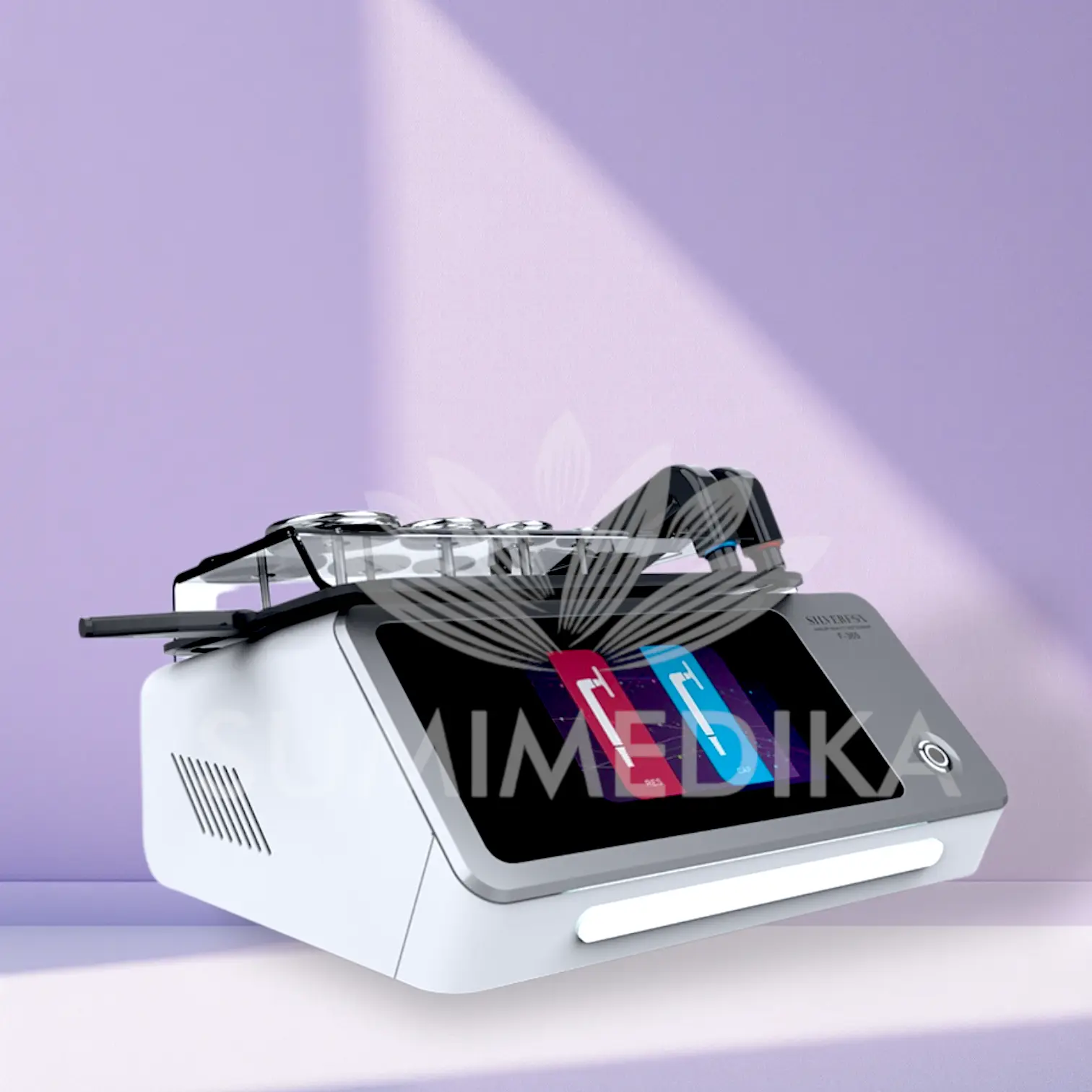 • Pantalla táctil LCD: Interfaz intuitiva que facilita la selección de parámetros y el control preciso de los tratamientos.